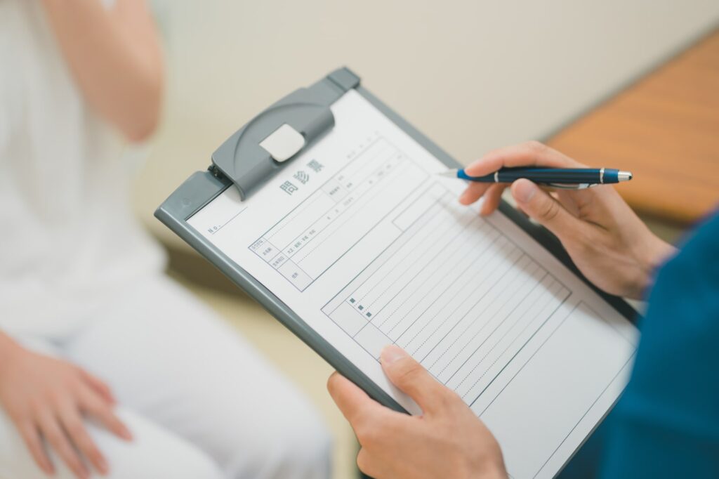 受付にて問診票をお渡しいたしますので、今のお身体の状態やお悩みをご記入ください。